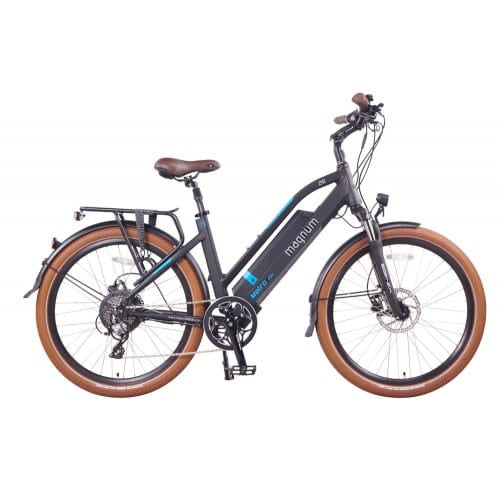 The Magnum Metro is a beautifully designed, purpose built e-bike for city rides or commuting. It will absolutely appeal to the more aesthetic conscious bike riders as this e-bike just looks and feels really nice. Which does not mean that it isn't a quality e-bike! The step-thru frame makes it easy to get on and off and with a powerful 500 watt motor paired with a large 48 volt 13 amp hour battery pack, this e-bike offers both pedal assist and throttle mode.