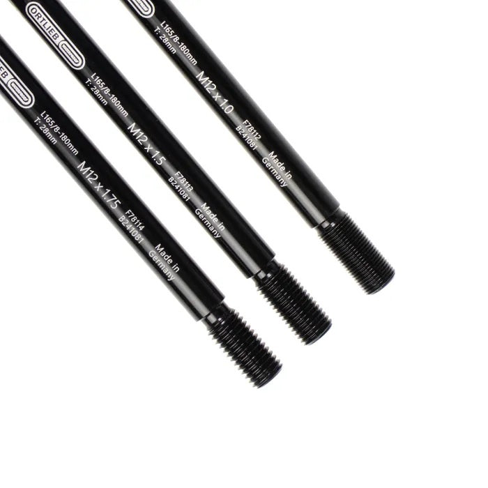 The thru axle is made of high-quality aluminum in Germany and is available in three thread pitches (1 / 1.5 / 1.75